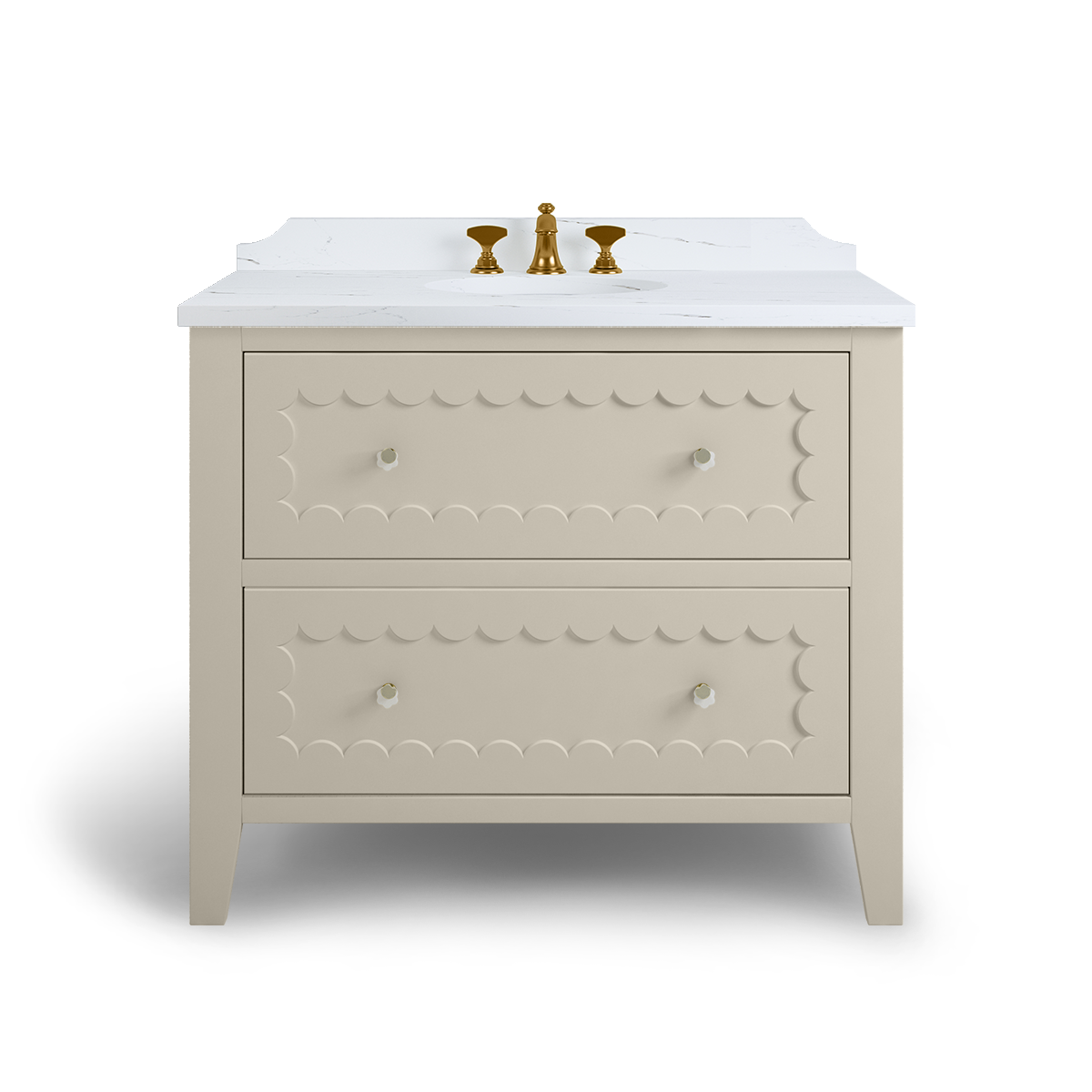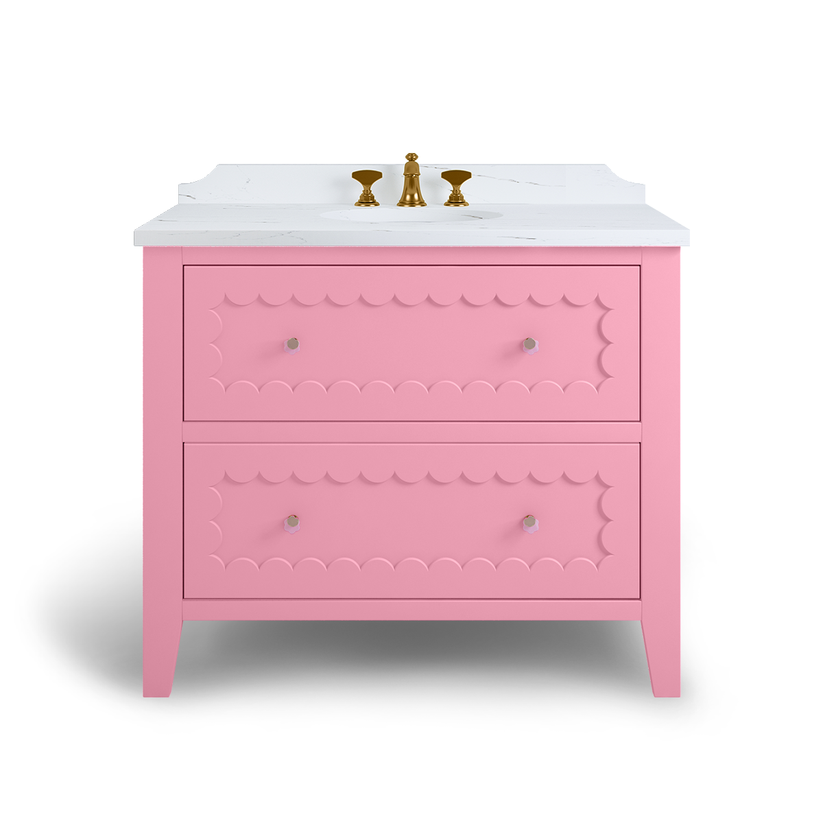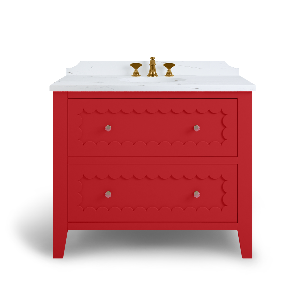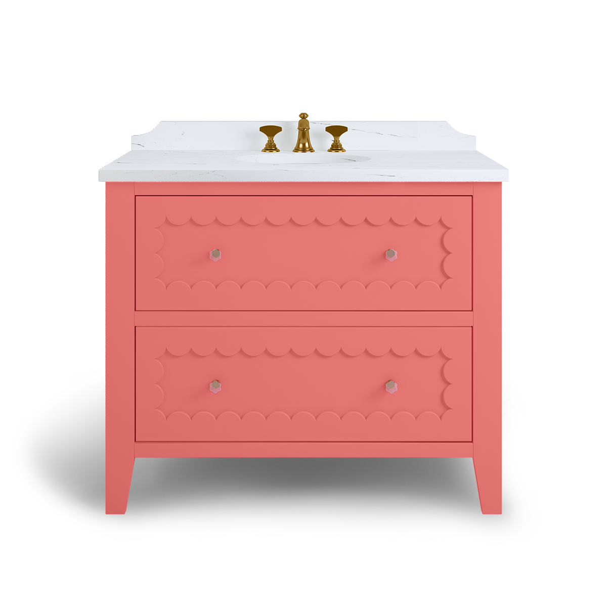 The Coral is a breath of happiness with scallop drawer fronts and neatly tapered feet