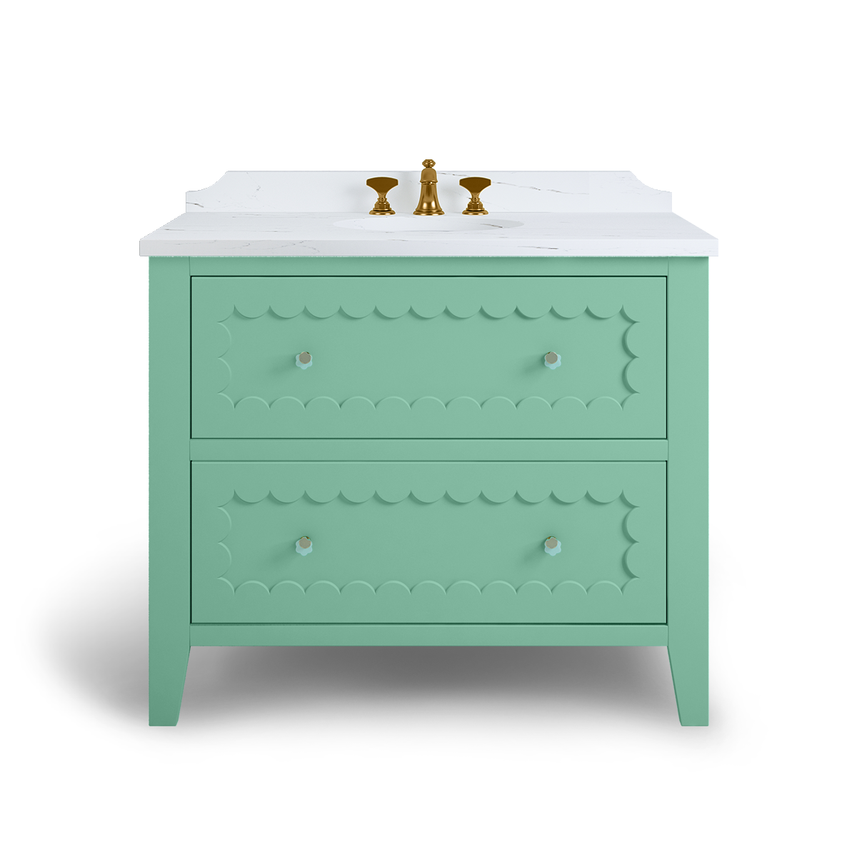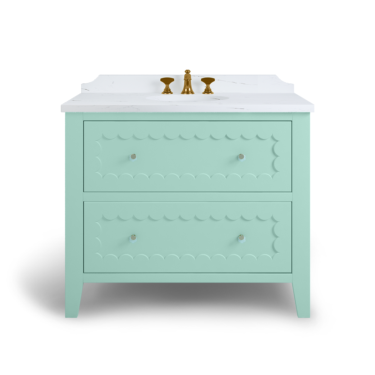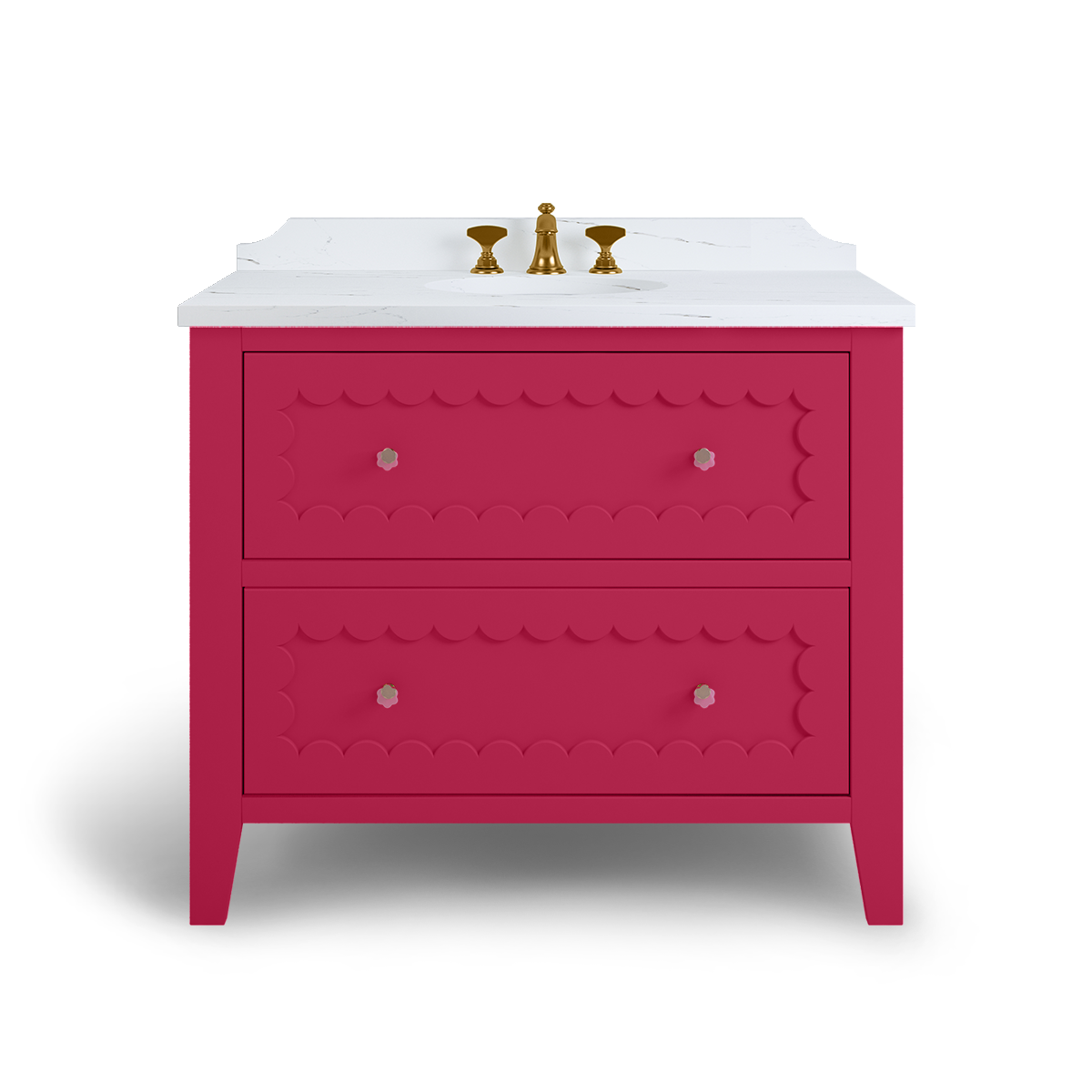 The Coral is a breath of happiness with scallop drawer fronts and neatly tapered feet