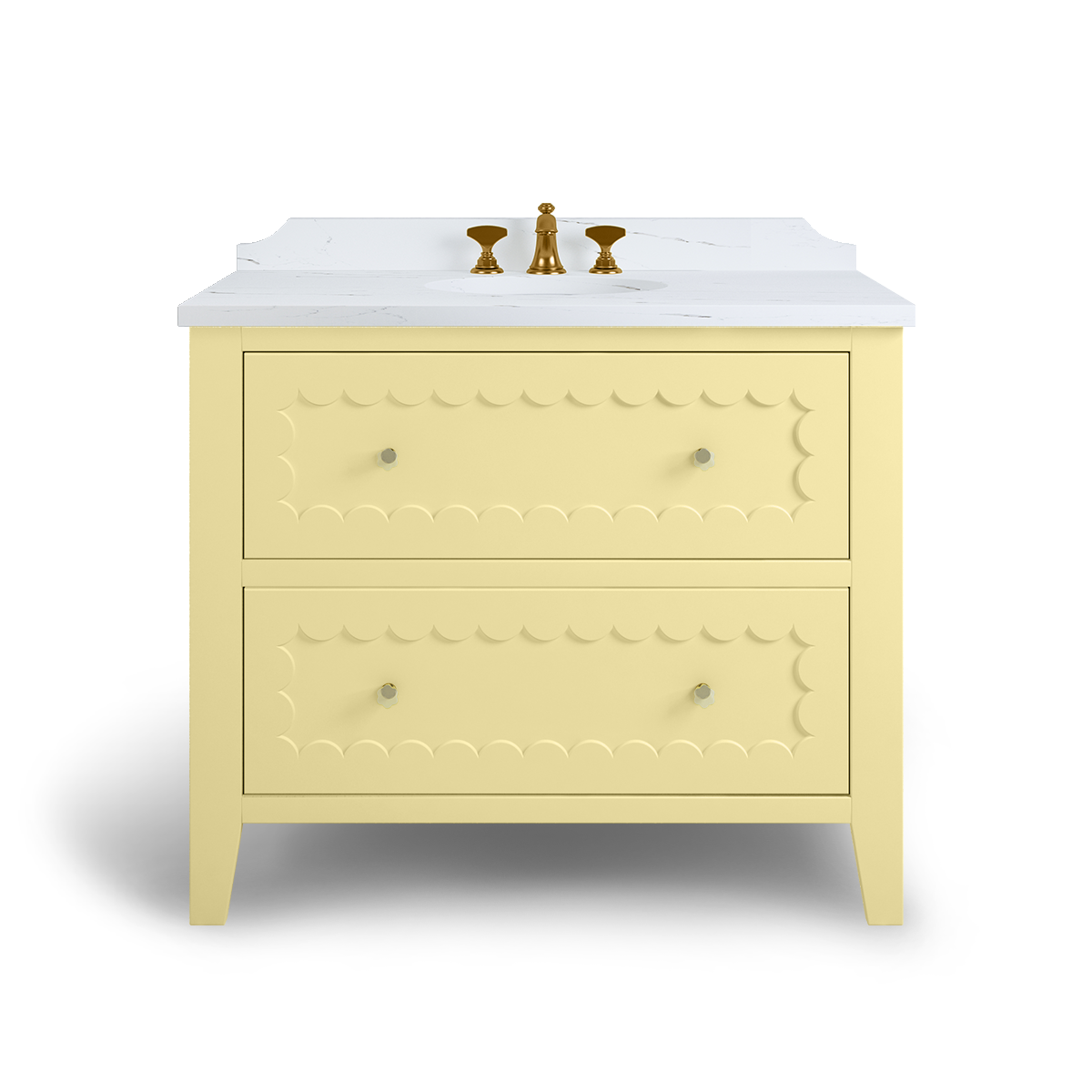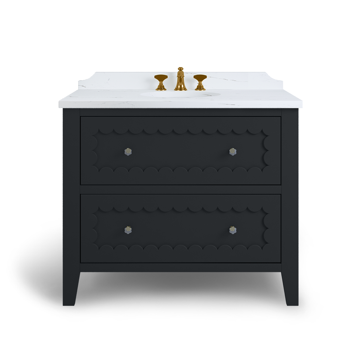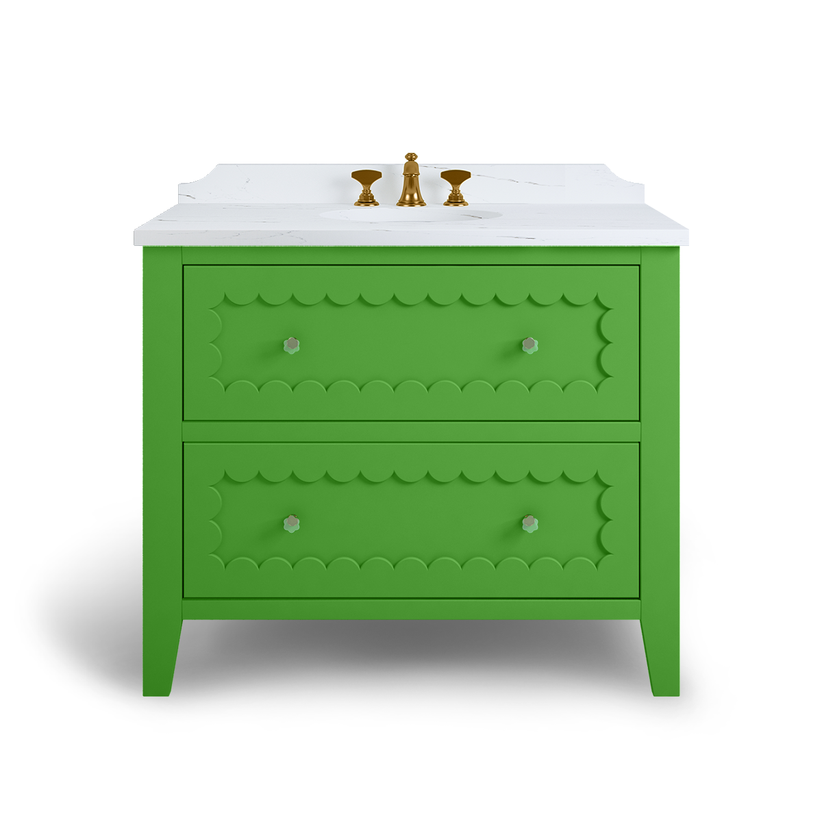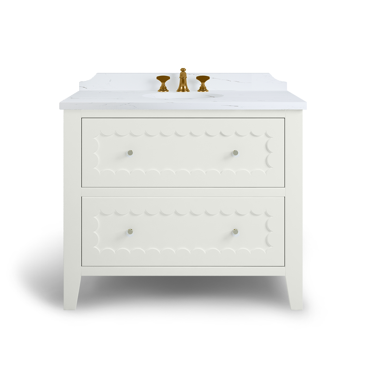 The Coral is a breath of happiness with scallop drawer fronts and neatly tapered feet